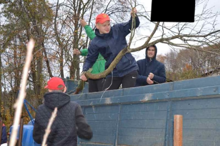 Работа проходила в 2 этапа, первый из которых взяли на себя сотрудники «БелАЗа», они срубили, а затем распилили сухие и старые деревья на участке Тамары Адамовны, эстафету переняли волонтеры отряда «Забота» погрузили их на грузовой автомобиль, предоставленный КПУП «Могилевзеленстрой», которые в свою очередь вывез деревья на специальный полигон.